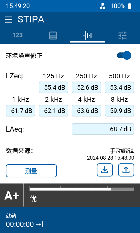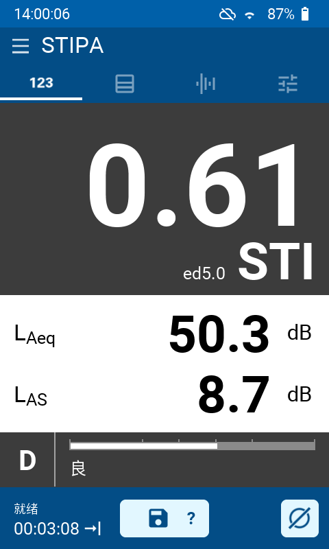 XL3 分析仪安装语言传输指数 STIPA 选件,即可基于最新的  IEC 60268-16:2020(第五版)和旧版本测量语言传输指数。它支持环境噪声修正以及自动平均测量结果功能。XL3 以语言传输指数 STI 或通用清晰度指数 CIS 为单位显示测量结果,包含 7 个独立倍频程频带声压级修正与调制函数。