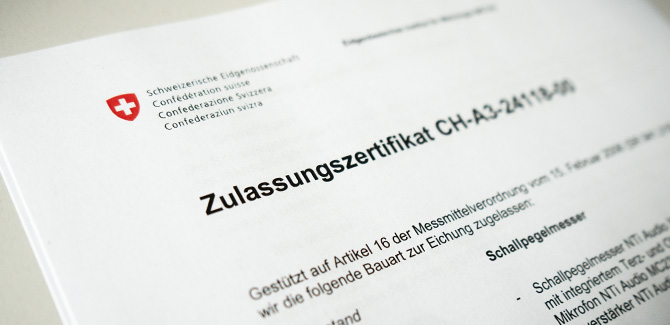 XL3 声级计通过了瑞士联邦计量科学研究院 METAS 的 1 级型式认证。因此,这款 1 级型式认证声级计适用于在瑞士执行需要经过认证的测量,包括环境噪声、职业健康和建筑隔声等涉及声级计的应用。