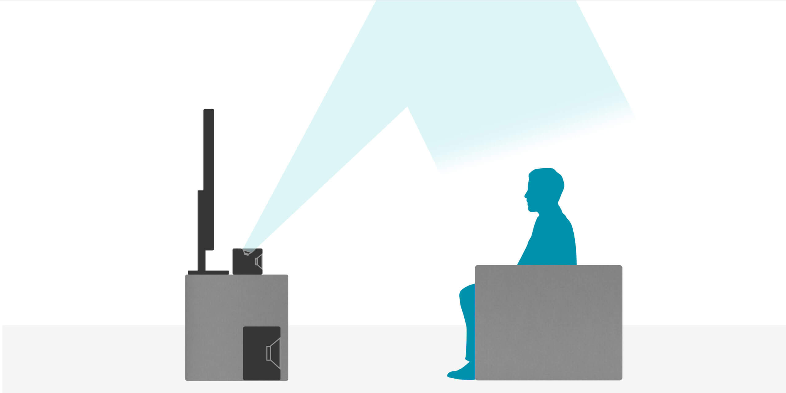 扬声器的高度略高于听众的耳朵,比如 130 - 140 厘米。